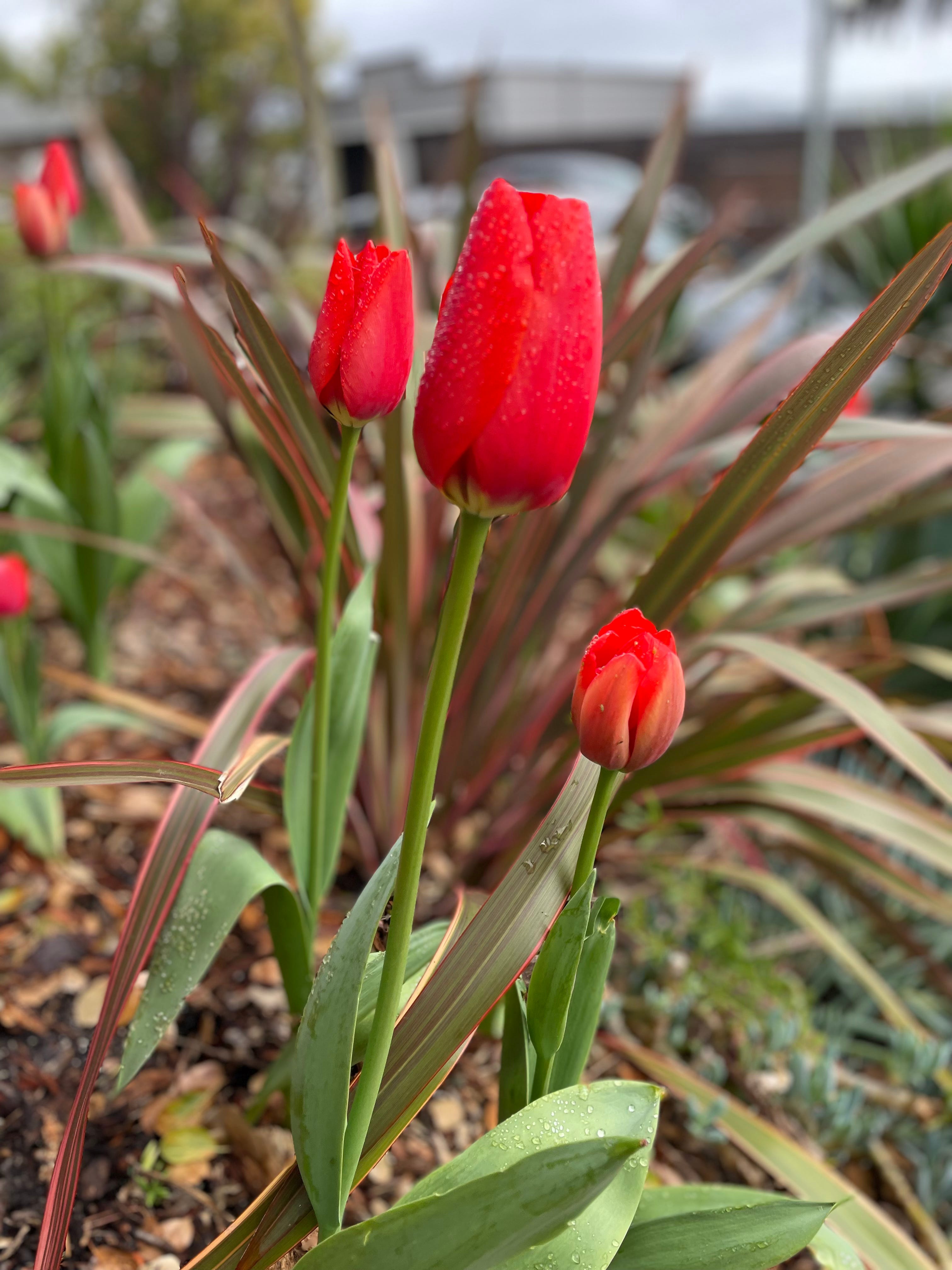 It’s raining here in California. A lot. I can hear the patter on my roof…now a delicate staccato, drip drip drip. Earlier it was torrential, sheets of rain pounding with such force it sounded like a fire hose aimed directly at the house. While I navigate flooded streets and worry about seasonal water seepage coming up through the concrete in my garage, the tulip bulbs and ferns in my garden are having a very different experience. Their roots, swollen with life-giving moisture, are sending a signal to the green shoots to reach for the light…unfurling spiraling fronds, coaxing tightly bound blossoms into becoming.